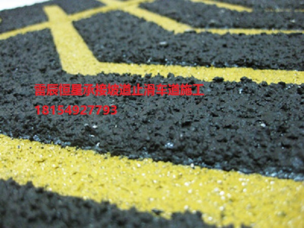 特有的耐磨、耐壓、耐沖擊、耐侯性,能適應室外惡劣的氣候狀況,滿足高流量的使用要求,有效延長道路、坡道的使用壽命。    車道防滑材料顏色多樣,搭配合理、美觀,能滿足人們審美要求。   防滑性能好,車輛行駛在上面平穩舒適、震動感小、人車安全。